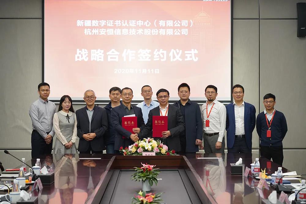 11月11日,新疆数字证书认证中心(以下简称“新疆CA”)与金年会信息技术股份有限公司(以下简称“安恒信息”)战略合作签署仪式于安恒大厦顺利举行,未来双方将在信息技术应用创新领域展开深入合作,共同推进数字领域安全解决方案。